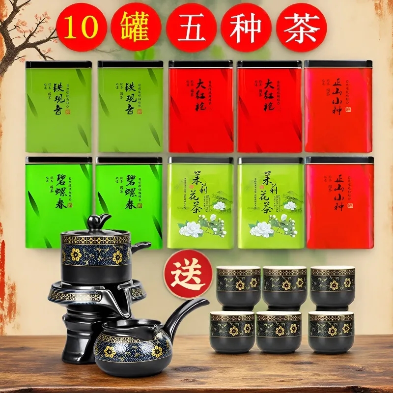 [1]下單即送旋轉陶瓷茶具一整套 爆款囤茶組合 鐵觀音×2|大紅袍×2|金駿眉×2|茉莉花茶×2|正山小種×2 一套 10 大罐,免運