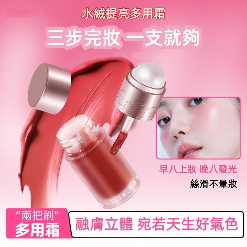 【水絨提亮多用霜】一抹即澎紅潤氣色,稚嫩妝感透亮不卡粉 質地水潤絲滑好暈染,五分鐘搞定偽素顔妝容~