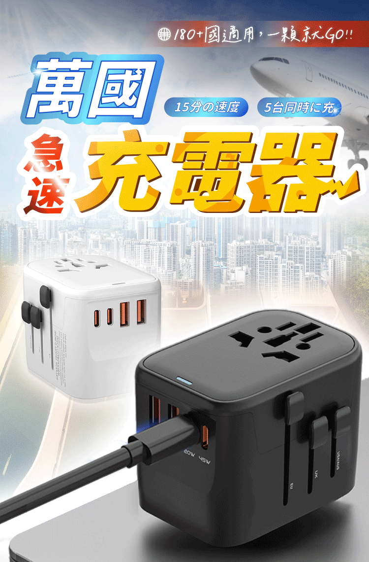 轉接+快充 【萬國急速充電器】環遊世界一顆GO!
