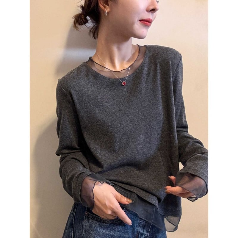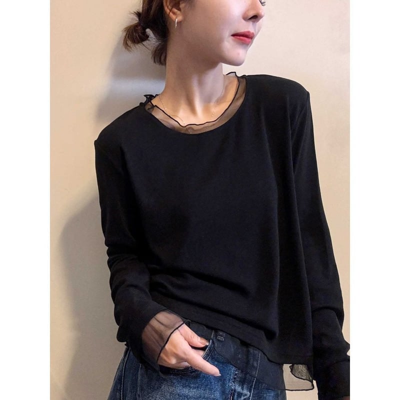 歐根紗袖領口拼接設計,自帶法式優雅,精致又顯氣質,内搭外穿都好看,穿起來讓人眼前一亮!