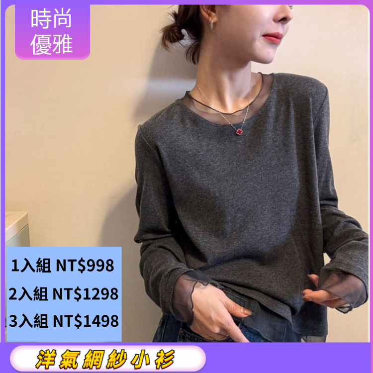 [3] 洋氣網紗小衫【時尚修身】3入組 僅需NT$1498(免運)