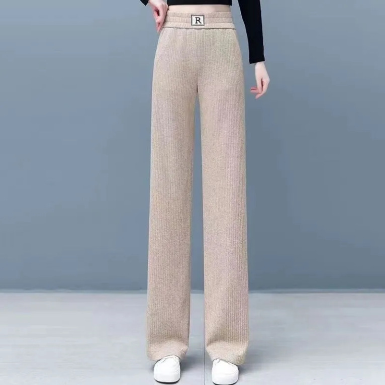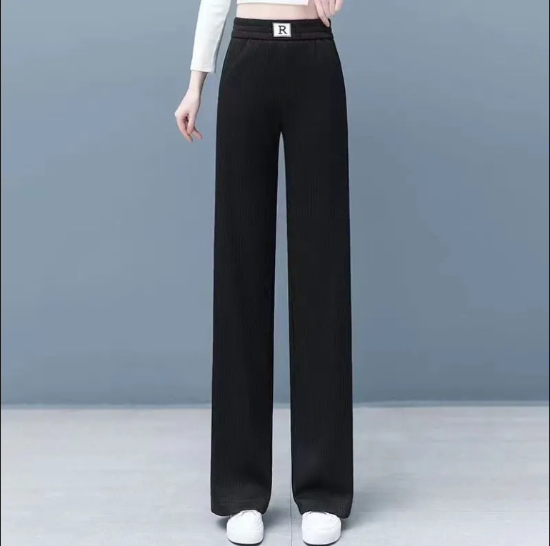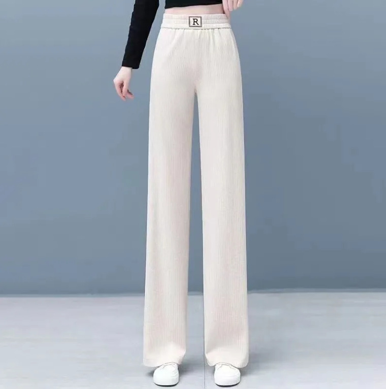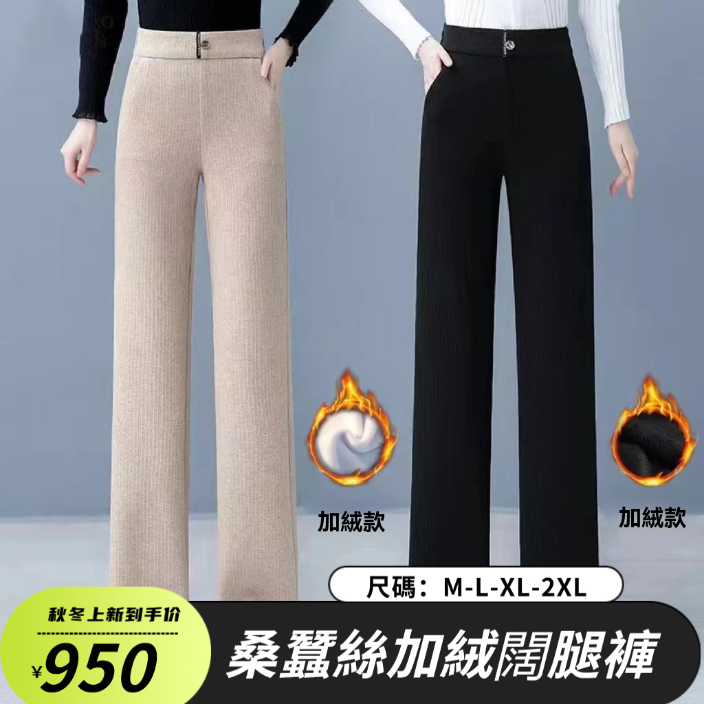 桑蠶絲羊絨加厚高腰氣質顯瘦彈力窄版闊腿褲梧桐褲毛呢褲新款女褲