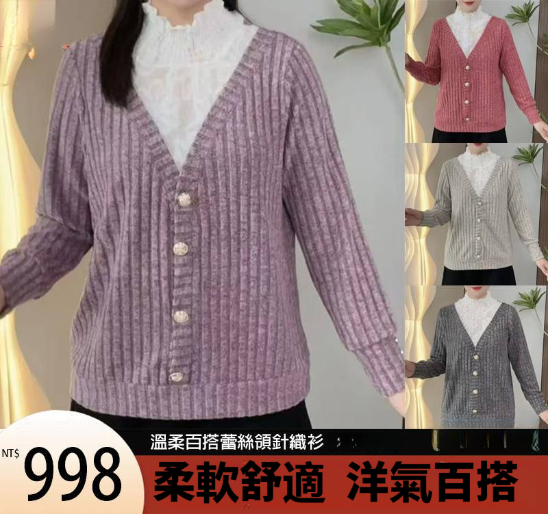 [3]「蕾絲領針織衫,三入組」NT$1450
