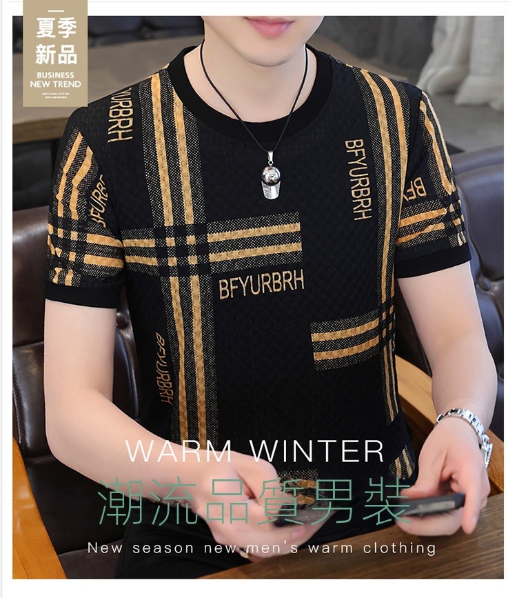 2025歐洲站新款男士冰絲T恤 ,透氣舒適 !吸濕速乾!不縮水 不褪色 帥氣有型,45-115KG可穿